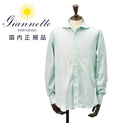 フィナモレ Finamore 長袖ストライプ柄シャツ メンズ コットンジャージーシャツ DENVER SIMONE シモーネ ミントグリーン×ホワイト ブランドロゴ入り貝釦 カッタウェイ襟 JTONDO型 国内正規品 オクテット名古屋のレビューを書く