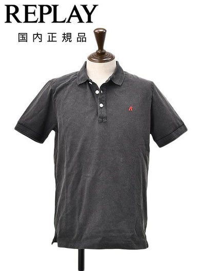 リプレイ REPLAY 半袖ポロシャツ メンズ 3つ釦 鹿の子地 コットンピケ ブラックウォッシュ 製品染め ブランドロゴ刺繍 レギュラーフィット 国内正規品 でらでら 公式ブランドのレビューを書く