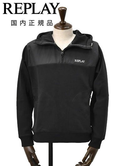 リプレイ REPLAY ハーフジップパーカー メンズ プルオーバー 3者混生地 ブラック 黒 スタンドネック仕様 ブランドロゴ刺繍 異素材切り替えデザイン サイドポケット 国内正規品 でらでら 公式ブランドのレビューを書く