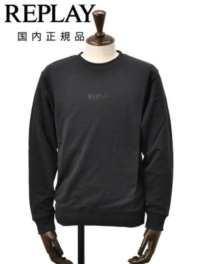 リプレイ REPLAY 長袖トレーナー メンズ スウェットシャツ フレンチテリー ブラック 黒 クルーネック レタリングロゴ 裏パイル 背面ロゴラベル 国内正規品 でらでら 公式ブランドのレビューを書く