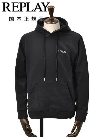 リプレイ REPLAY プルオーバーパーカー メンズ フーディースウェットシャツ コットンテリー素材 ブラック 黒 ブランドロゴ刺繍 裏パイル ドローコード付き 国内正規品 でらでら 公式ブランドのレビューを書く