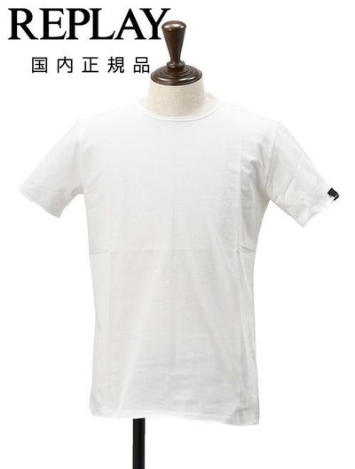 リプレイ REPLAY 半袖Tシャツ メンズ クルーネックカットソー ダメージ風デザイン コットンジャージー ホワイト 白 左袖ブランド織りタグ 薄手仕様 レギュラーシルエット 国内正規品 でらでら 公式ブランドのレビューを書く