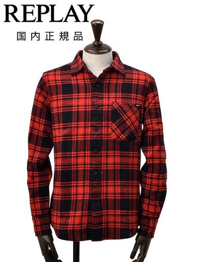 リプレイ REPLAY チェック柄シャツ メンズ コットンフランネル 胸ポケットデザイン レッド×ブラック パッチ釦フロント レギュラーフィット 国内正規品 でらでら 公式ブランドのレビューを書く