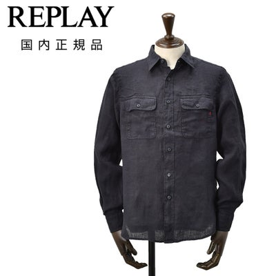 リプレイ REPLAY 長袖リネンシャツ メンズ CPO型シャツ M4147モデル リネン100% ダークネイビー 製品染め 裾ラウンドカット フラップ付き胸ポケット 国内正規品 オクテット名古屋のレビューを書く