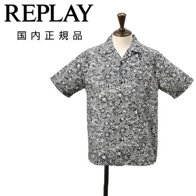 リプレイ REPLAY 開襟シャツ メンズ 半袖アロハシャツ コットンポプリン ネイビー×ホワイト ボタニカル柄プリント オープンカラー リラックスフィット 国内正規品 オクテット名古屋のレビューを書く