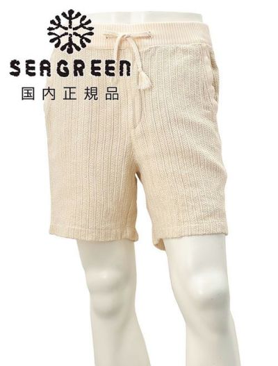 シーグリーン Seagreen ハーフパンツ メンズ ショートパンツ Crochet Like Russel Knit アイボリー ラッセル素材 コットンリネン ゴムウエスト&ドローコード調節 国内正規品 でらでら 公式ブランドのレビューを書く