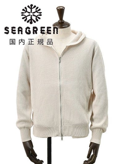 シーグリーン Seagreen ジップアップパーカー メンズ モスステッチニット MOSS STITCH 和紙混紡ポリエステル アイボリー 鹿の子編み リブ装飾 レギュラーフィット 国内正規品 でらでら 公式ブランドのレビューを書く