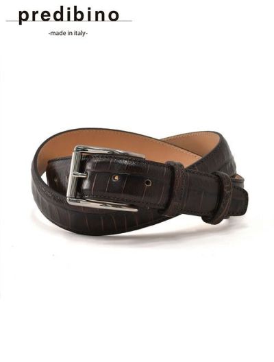 プレディビーノ Predibino レザーベルト メンズ クロコ型押し風 イタリアンレザー ダークブラウン 3.5cm幅 本革 プリントデザイン 真鍮バックル ギフト 贈り物 イタリア製 でらでら 公式ブランドのレビューを書く