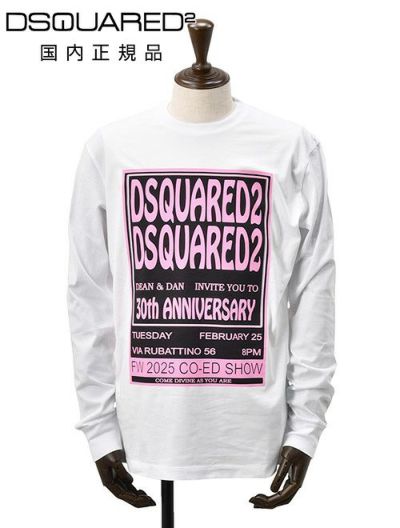ディースクエアード DSQUARED2 長袖Tシャツ メンズ クルーネックカットソー コットンジャージー ホワイト 白 30th Anniversary記念モデル プリントデザイン レギュラーフィット 国内正規品 オクテット名古屋のレビューを書く