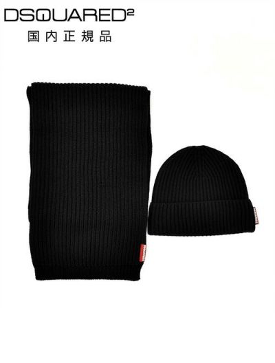 ディースクエアード DSQUARED2 メンズ マフラー&キャップ ニット帽 2点セット ブラック 黒 ウール ブランドタグ 赤タグ 男性 プレゼント ギフトのレビューを書く