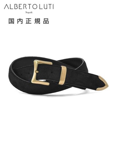 アルベルト ルティ ALBERTO LUTI レザーベルト メンズ プンターレ仕様 カーフスエード ブラック 黒 ヴィンテージバックル 30mm幅 ブランド刻印 国内正規品 でらでら 公式ブランドのレビューを書く