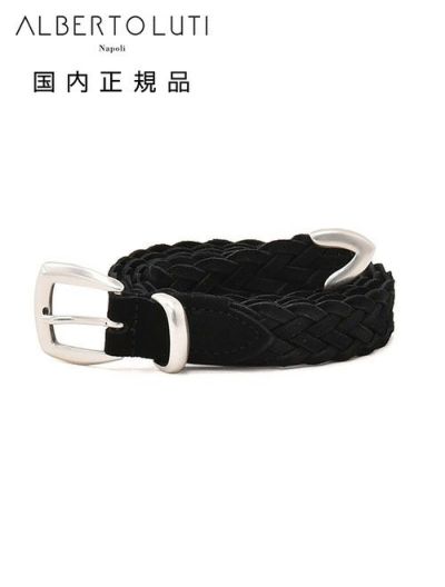 アルベルト ルティ ALBERTO LUTI レザーメッシュベルト メンズ プンターレ カーフスエード 裏面別生地 ブラック 黒 25mm幅 ブランド刻印 シルバー真鍮バックル 国内正規品 でらでら 公式ブランドのレビューを書く