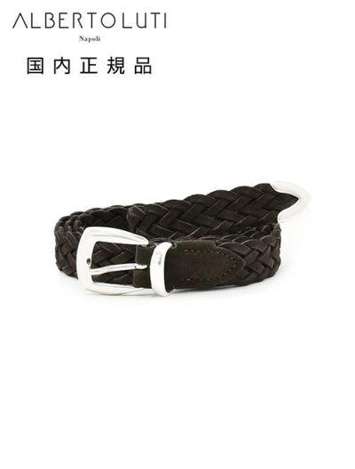 アルベルト ルティ ALBERTO LUTI レザーメッシュベルト メンズ プンターレ カーフスエード 裏面別生地 ダークブラウン 茶 25mm幅 ブランド刻印 シルバー真鍮バックル 国内正規品 オクテット名古屋のレビューを書く