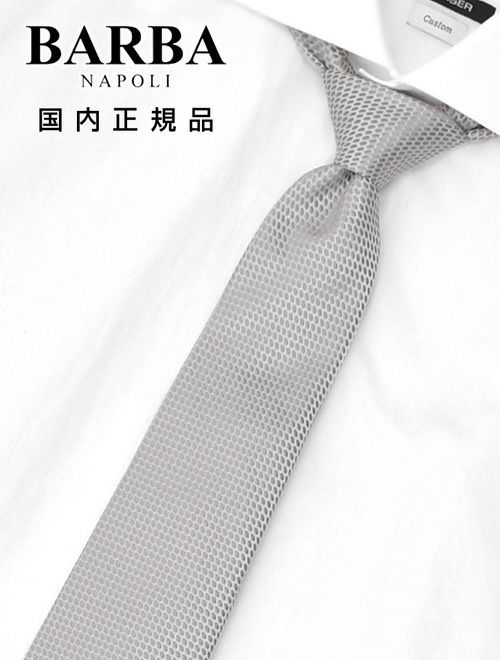 バルバ BARBA ネクタイ メンズ セッテピエゲ 7つ折り ジャガード柄デザイン シルク100% シルバー 大剣8cm 光沢 ビジネス小物 イタリア製 プレゼント 贈り物 国内正規品 でらでら 公式ブランド
