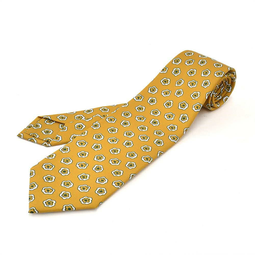 バルバ BARBA ネクタイ メンズ セッテピエゲ 7つ折り スクエア柄デザイン シルク100% イエロー マスタード 大剣7.5cm 光沢 ビジネス小物 イタリア製 プレゼント 贈り物 国内正規品 でらでら 公式ブランド