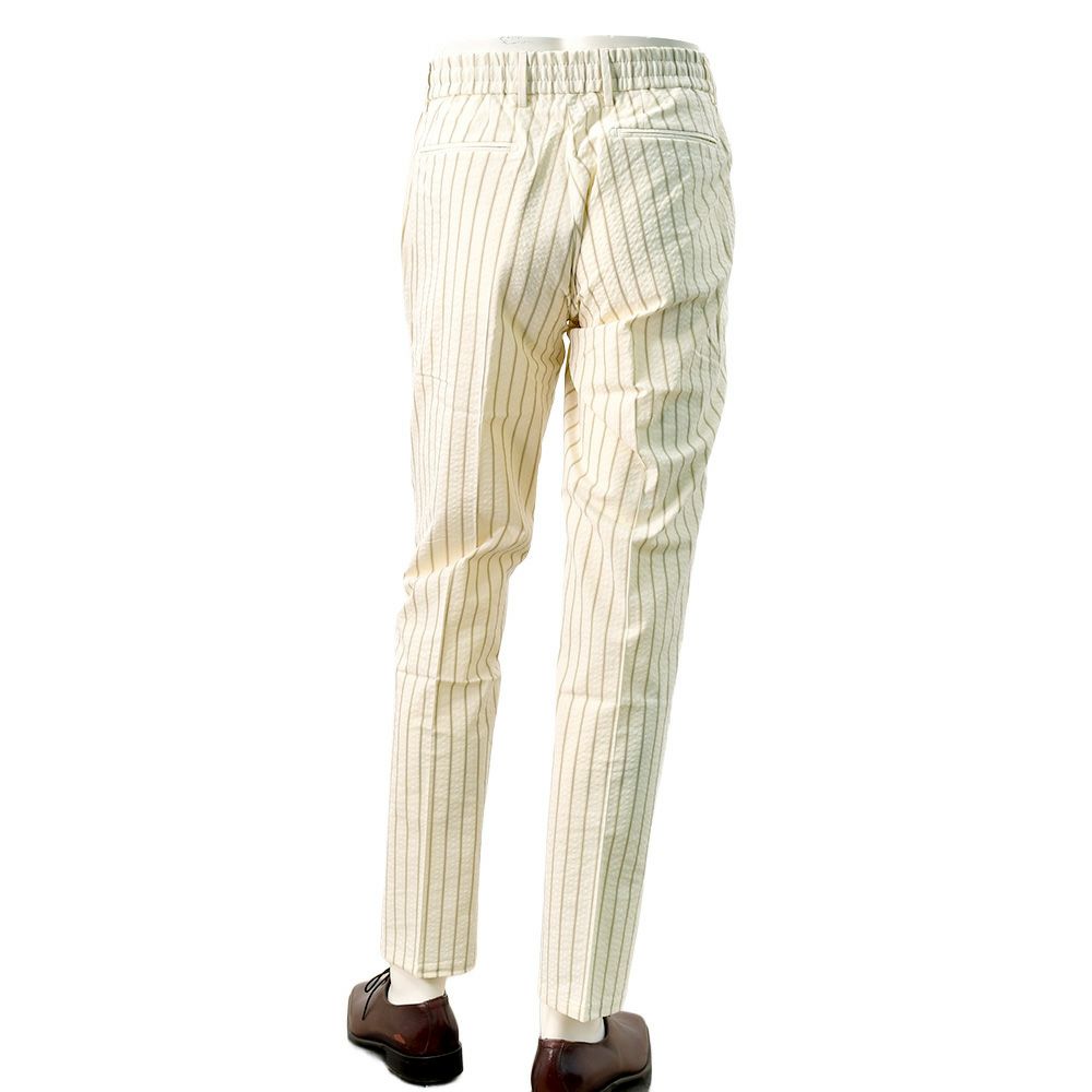 他の画像を見る ベルウィッチ BERWICH イージーパンツ メンズ ストライプ柄パンツ SAKE 1P GYM サケ・ジムモデル シアサッカー生地 アイボリー×ブラウン 1プリーツ キャロットフィット ドローコード調節 国内正規品 オクテット名古屋 メーカー希望小売価格 ¥ 39,600 ¥ 39,600 税込 カートに入れる お気に入りに登録する