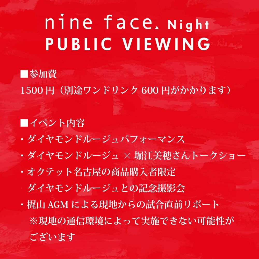 他の画像を見る パブリックビューイングで一緒にドルフィンズを応援しましょう! 【オクテットポイントはお使い頂けません】【nine face night】12月10日ダイヤモンドルージュ(チア)と一緒にドルフィンズを応援するパブリックビューイングat ZEPHYR HALL ¥ 1,500 税込 販売を終了しました。 詳細を見る お気に入りに登録する